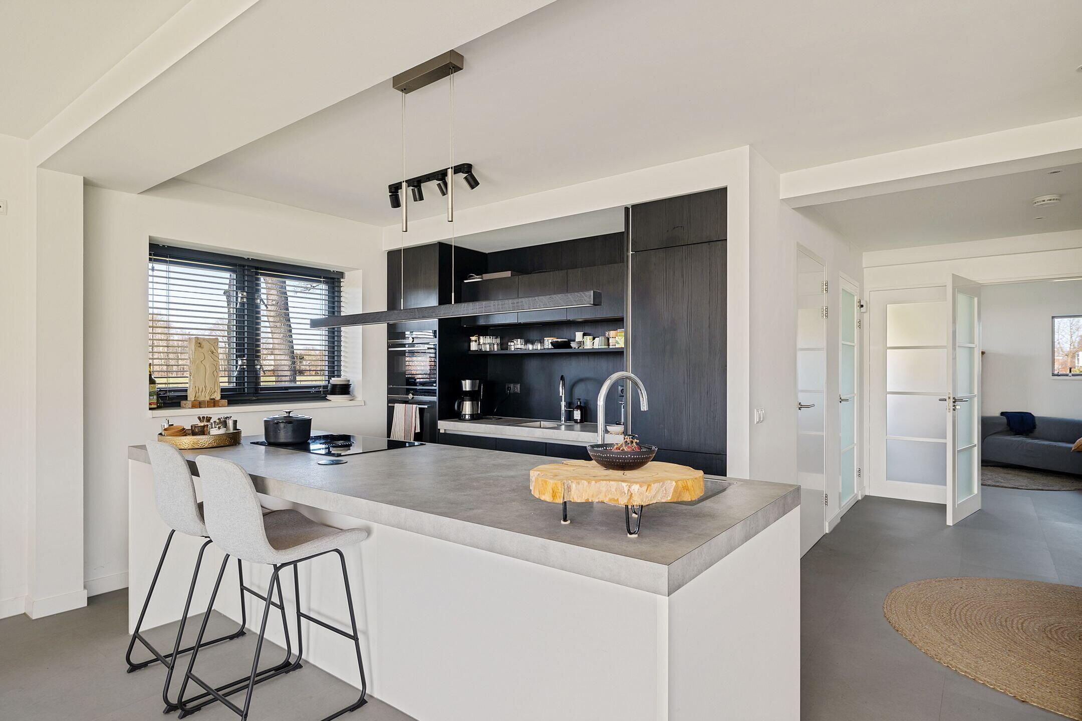 • Moderne luxe keuken met kookeiland, voorzien van alle inbouwapparatuur, waaronder inductie koken