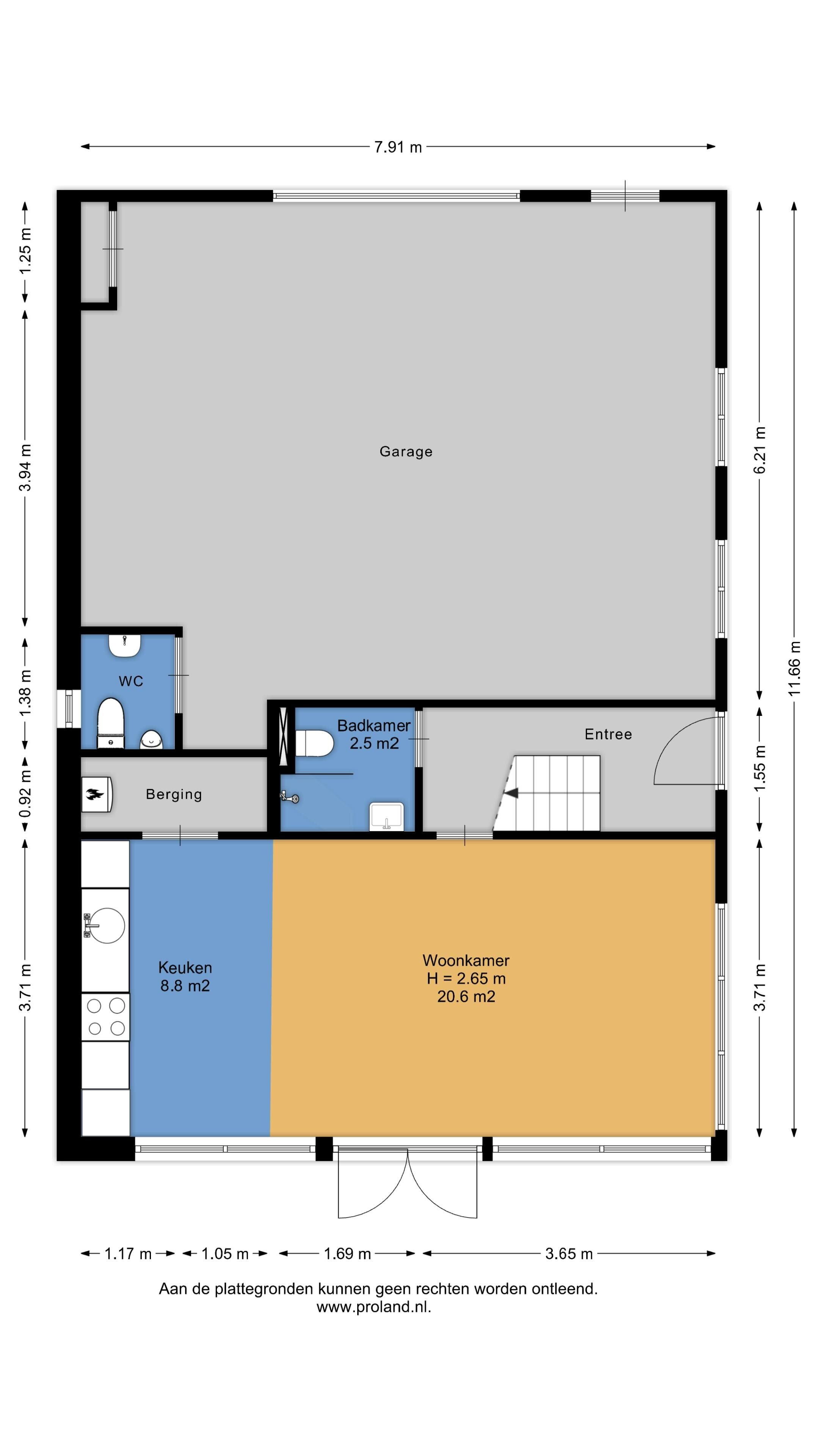 Begane grond: hal/entree, kelder, ruime tuingerichte woonkamer met rokkanaal, schuifpui en een open woonkeuken met kookeiland, samen groot 65 m². Aan de voorzijde van de woning bevindt zich een slaap-/werkkamer met aangrenzend een kleedkamer en een badkamer met douche en toilet. De ruime bijkeuken heeft een grote spoelkeuken, een kastenwand, een ruim toilet en een achteringang.